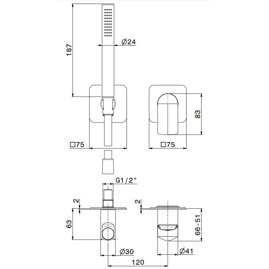 NEWFORM DELTA ZERO UNTERPUTZ-DUSCHEINHEIT MIT HANDBRAUSE UND MISCHER