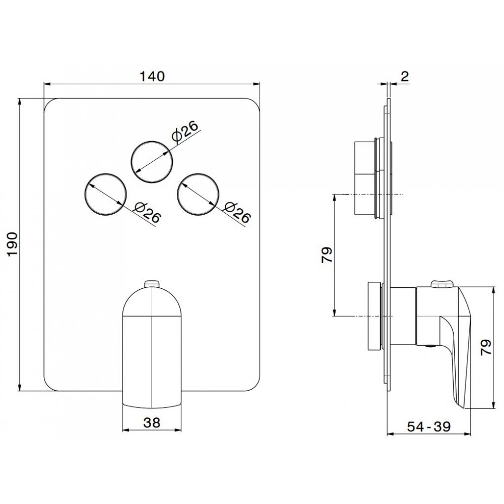 NEWFORM DELTA ZERO 3-WEGE-THERMOSTATMISCHER MIT EIN/AUS-TASTEN