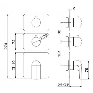 NEWFORM DELTA ZERO UNTERPUTZ-THERMOSTATBATTERIE MIT 2-WEGE-UMLENKUNG