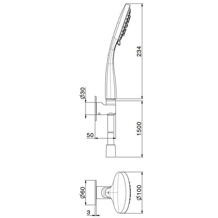 NEWFORM DELTA ZERO SET MIT 3-STRAHL-HANDBRAUSE UND FLEXSCHLAUCH OHNE WASSERANSCHLUSS
