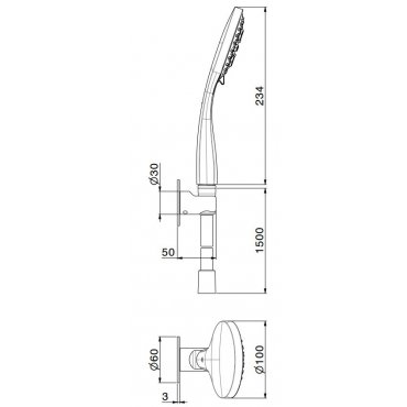 NEWFORM DELTA ZERO SET MIT 3-JET DUSCHE UND FLEXIBLER DUSCHE OHNE WASSERAUSGANG modernes Chrom bad 848