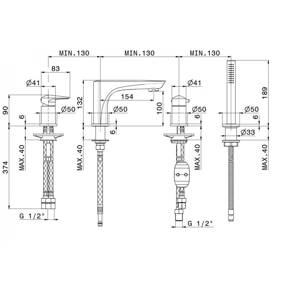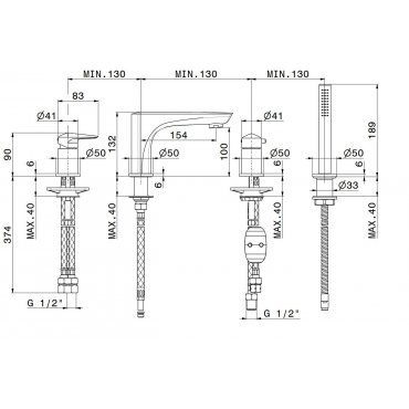 NEWFORM DELTA ZERO WANNENRANDGRUPPE MIT AUSLAUF, UMSTELLER UND BRAUSEGARNITUR