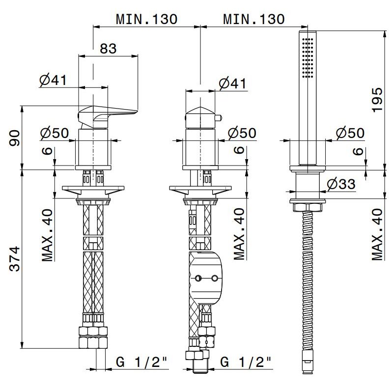 NEWFORM DELTA ZERO BADEWANNENRANDBATTERIE MIT UMSTELLER UND BRAUSEGARNITUR