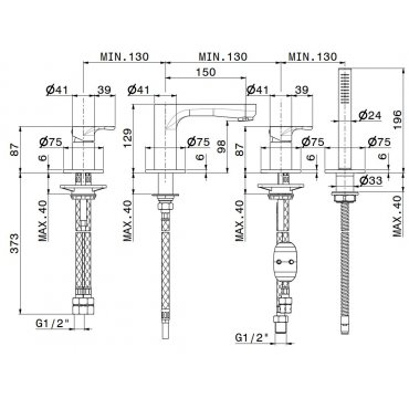 NEWFORM LINFA II WANNENRANDBATTERIE MIT AUSLAUF, UMSTELLER UND HANDBRAUSE SET