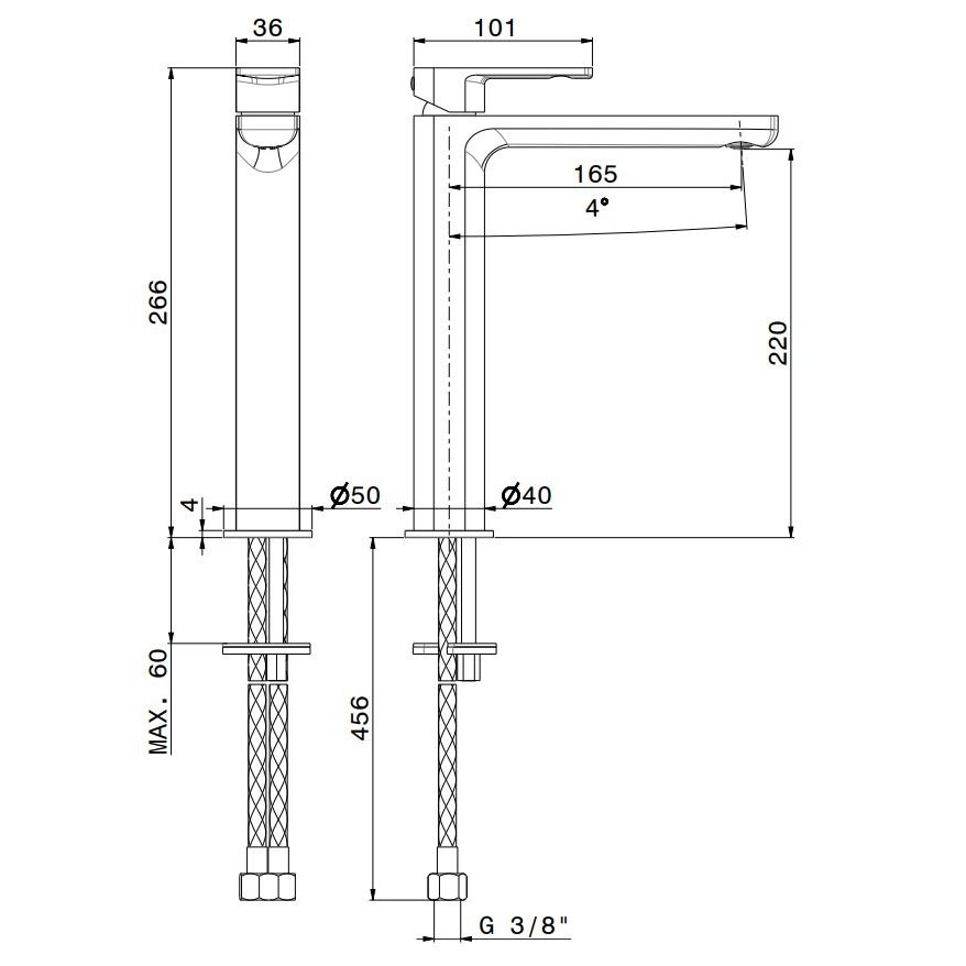NEWFORM HAKA HOHE WASCHBECKENARMATUR OHNE ABLAUFGARNITUR CHROM