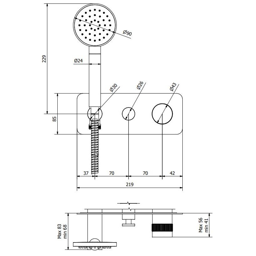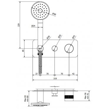 IB RUBINETTERIE REFLEX 2-WEGE-HYDROPROGRESSIVMISCHER, HANDBRAUSE UND UMSTELLER