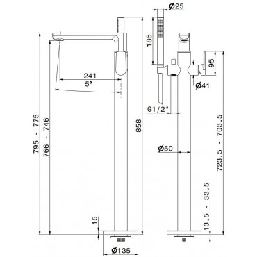 • BEAMTECH LEVEL FREISTEHENDE BADEWANNENBATTERIE, EDELSTAHLAUSLAUF UND HANDBRAUSE