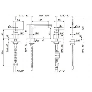 GABOLI FRATELLI MOOD WANNENRANDBATTERIE MIT 5 LÖCHERN MIT AUSLAUF UND DUSCH