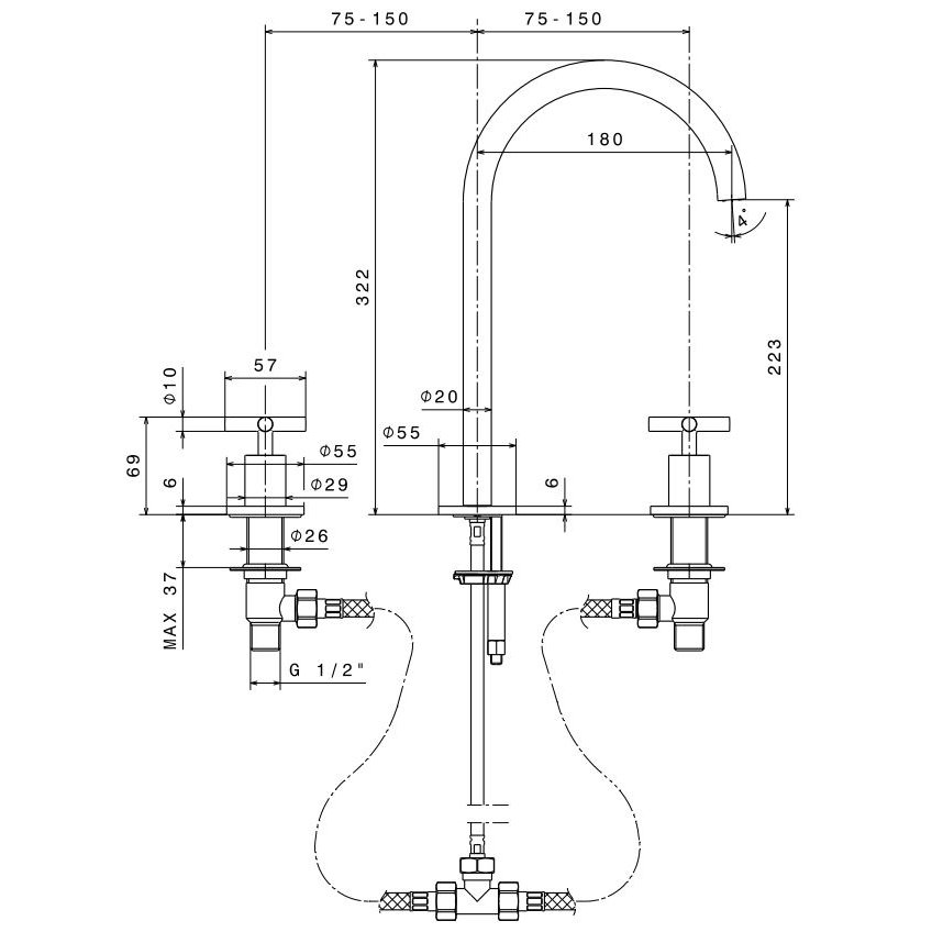 • GABOLI FRATELLI OASI VERCHROMTE DREILOCHBATTERIE FÜR WASCHBECKEN