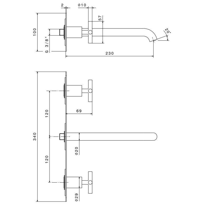 • BUGNATESE TETRIS WANDMONTIERTE WASCHBECKENARMATUR 2 PLATTEN AUSLAUF 15,5 CM