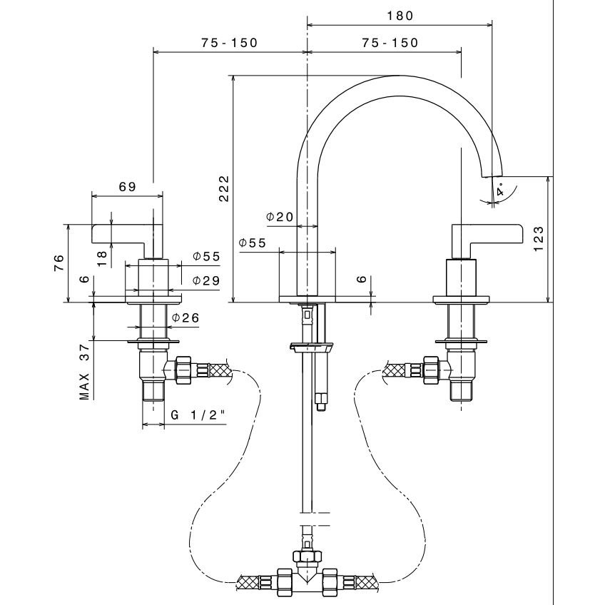 GABOLI FRATELLI ICE BIJOUX WASCHBECKENMISCHER 3 LOCH MIT SCHWENKBAREM AUSLAUF