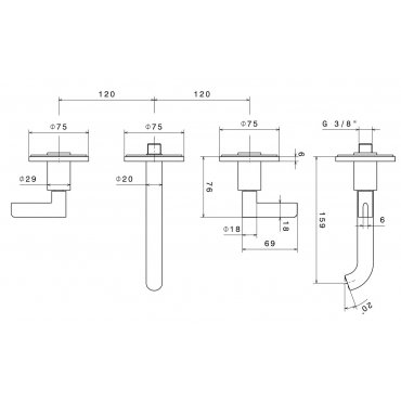 QUADRO DESIGN HB 2-LOCH-WANDBATTERIE MIT 250 MM LAUF