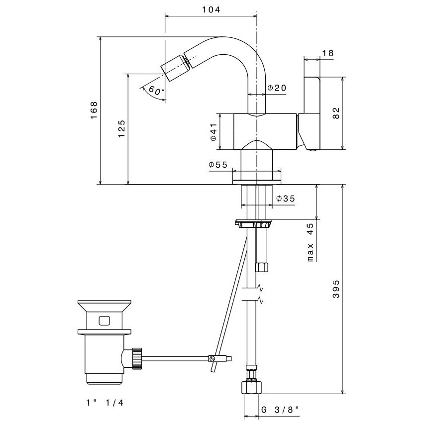 TREEMME PHILO BIDET-EINHANDBATTERIE CHROM