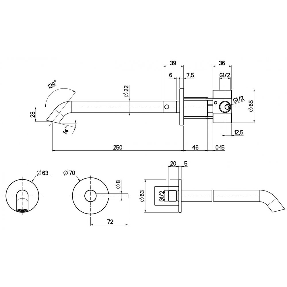 QUADRO DESIGN FFQT WANDMONTIERTER WASCHBECKENMISCHER MIT LANGER AUSLAUF