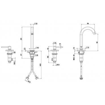 QUADRO DESIGN FFQT 3-LOCH-WASCHTISCHMISCHER MIT SCHWENKBAREM AUSLAUF