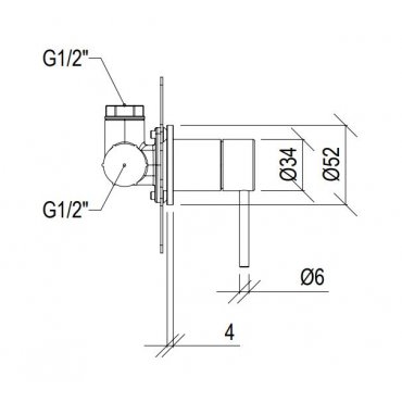 Einhebel-Unterputzmischer mit einem Durchmesser von 34 mm, aus Edelstahl 316L, mit oberem Abgang und G1/2"-Anschluss.