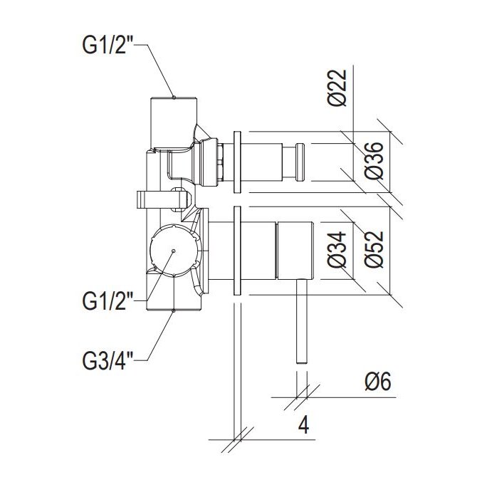 TUBICO TEVERE 2-WEGE-UNTERPUTZBATTERIE MIT UMSTELLER CHROM GEBÜRSTET