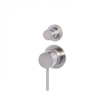 2-Wege-Einhand-Unterputzmischer, 34 mm Durchmesser, Edelstahl 316L, Druckknopf-Umsteller mit automatischem Rücklauf und G1/2"-Anschluss.