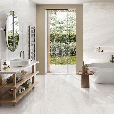 Das Feinsteinzeugprojekt setzt sich aus drei verschiedenen Marmorsorten zusammen: White Paradise, Nero Marquinia und Arabescato Corchia in natürlicher und vollflächiger Ausführung, die eine starke visuelle Wirkung entfalten und dem Raum eine tiefe Dynamik verleihen. Tele di Marmo Selection ist eine ebenso vielseitige wie beeindruckende Kollektion, die dem Planer unendlich viele Kompositionsmöglichkeiten bietet und sich für die Gestaltung kompletter Räume eignet.