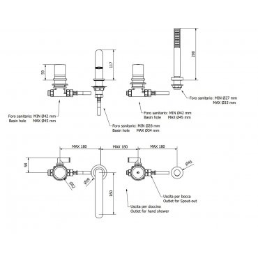 IB RUBINETTERIE BRERA 4-LOCH-BADEWANNE MISCHER MIT UMSTELLER, DUSCHKIT CHROM