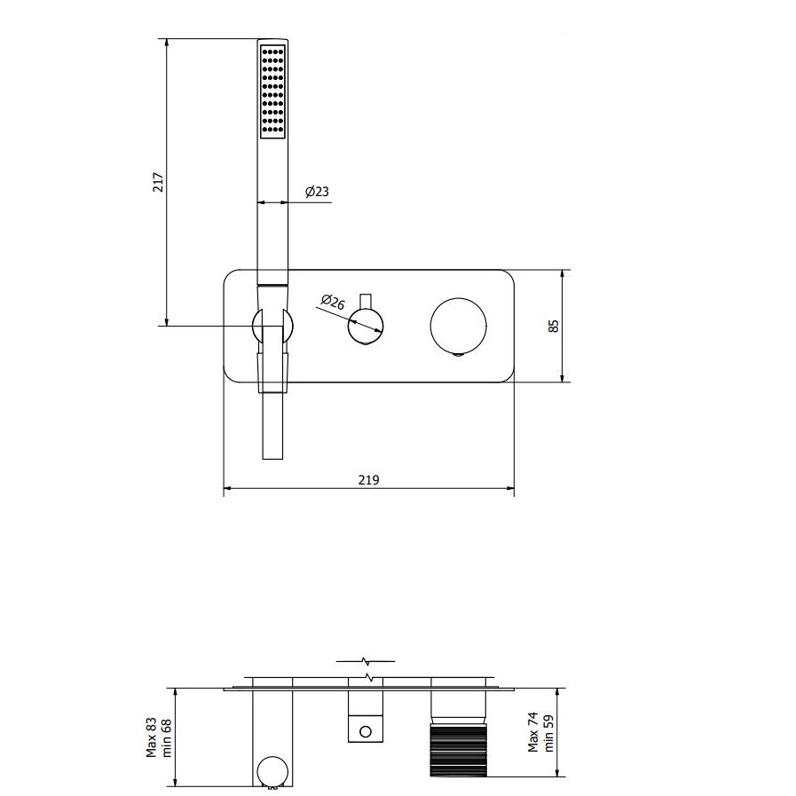IB RUBINETTERIE VINILE 2-WEGE-BRAUSEBATTERIE MIT BRAUSEGARNITUR NICKEL GEBÜRSTET