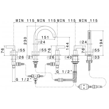 • IB RUBINETTERIE BELMONDO 5-LOCH-BADEWANNENRANDBATTERIE MIT BRAUSEGARNITUR