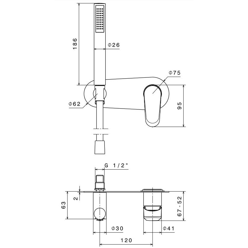 GABOLI FRATELLI TEORIA EINGEBAUTER DUSCH/BADEWANNE MISCHER MIT UMSTELLER