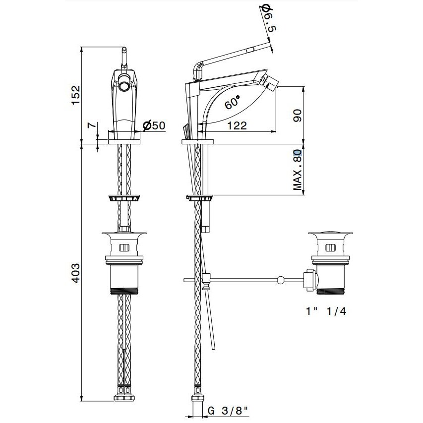 PAINI LE MANS BIDETMISCHER MIT SCHWENKBAREM AUSLAUF, AB- UND ÜBERLAUFGARNITUR