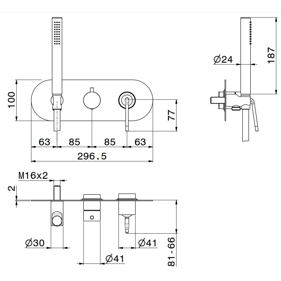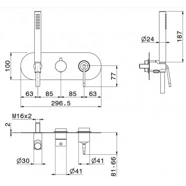 • GABOLI FRATELLI KLIP EINGEBAUTER DUSCHMISCHER MIT UMSTELLER