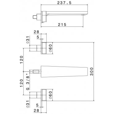 NEWFORM DELTA ZERO WANDBATTERIEGRUPPE LANGER AUSLAUF OHNE ABLAUF CHROM