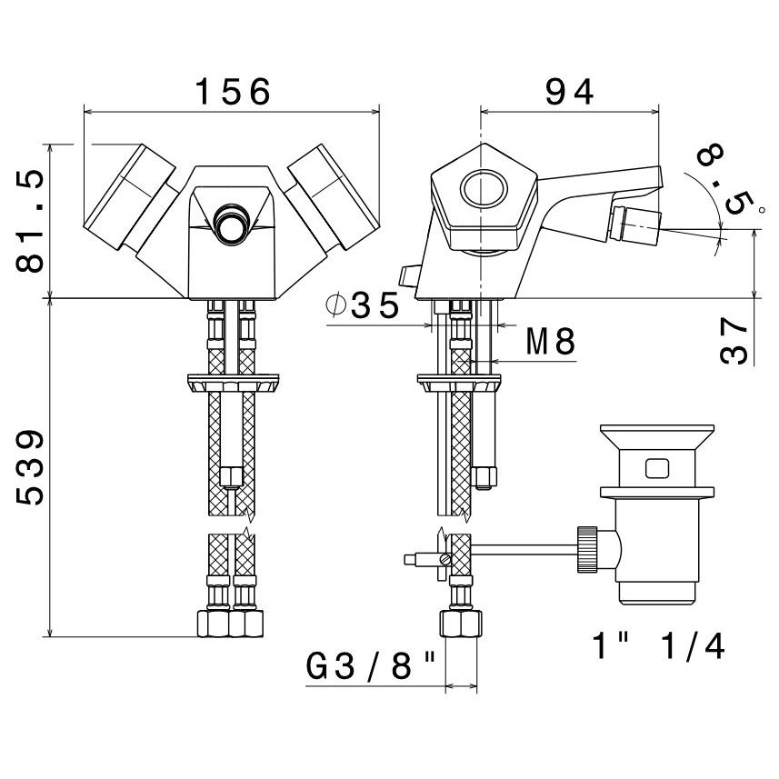 NEWFORM PARK LE BIDET MISCHBATTERIE MIT ABLAUFGARNITUR CHROM