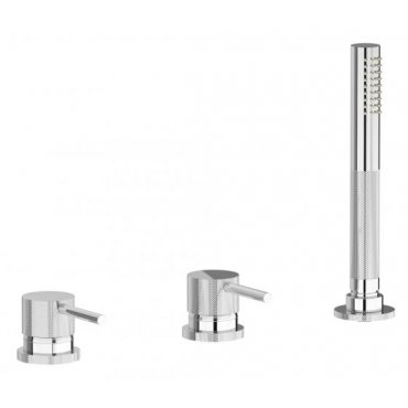 Dreiloch-Wannenbatterie für Füllsäule mit Umsteller und Brausegarnitur.