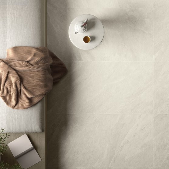 Die Kollektion umfasst zwei Oberflächen, eine natürliche und eine griffige im Format 60x60, ideal für hybride Umgebungen, in denen Wasser vorkommen kann, wie Duschen, Spas und Terrassen.