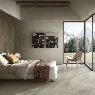 Die Kollektion umfasst zwei Oberflächen, eine natürliche und eine griffige im Format 60x60, ideal für hybride Umgebungen, in denen Wasser vorkommen kann, wie Duschen, Spas und Terrassen.