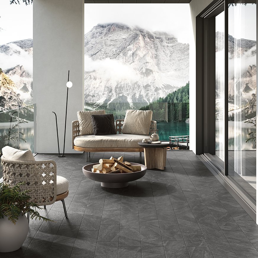 Die Fliesenserie Nesting von Del Conca Ceramiche erinnert an den Naturstein, insbesondere an den brasilianischen Schiefer, der in einer Reihe von vollflächigen Feinsteinzeugfliesen zum Leben erwacht.