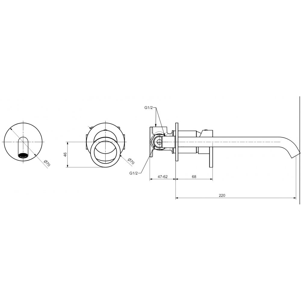 BUGNATESE B-COLOR WANDBATTERIE 22 CM AUSLAUF UND KLICK-ABLAUFGARNITUR CHROM