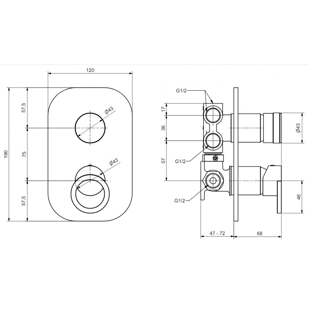 BUGNATESE B-COLOR 4-WEGE-UNTERPUTZ-BRAUSEBATTERIE MIT UMSTELLER CHROM