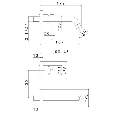 • GABOLI FRATELLI GRILLO EINBAUWASCHBECKENMISCHER MIT WANDAUSGUSS 200MM