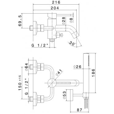 • GABOLI FRATELLI PINCO EXPONIERTE WANNENBATTERIE MIT DUPLEX HANDBRAUSE