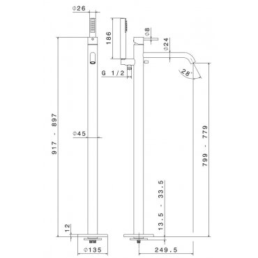 GABOLI FRATELLI STORM BODENSTEHENDE WANNENBATTERIE MIT UMSTELLER UND HANDBRAUSE