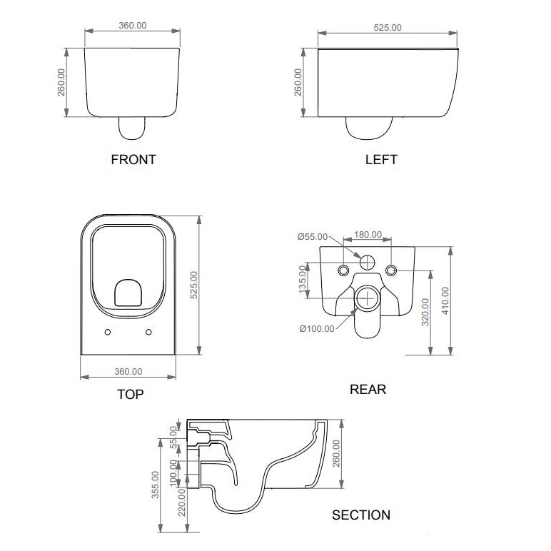 Wandhängende Toilette ohne Rand mit Smart Clean-Spülsystem.