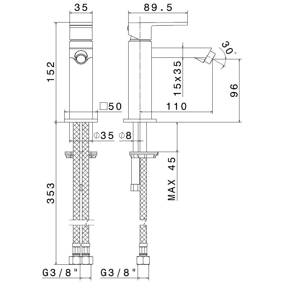 PAINI LE MANS BIDETMISCHER MIT SCHWENKBAREM AUSLAUF, AB- UND ÜBERLAUFGARNITUR