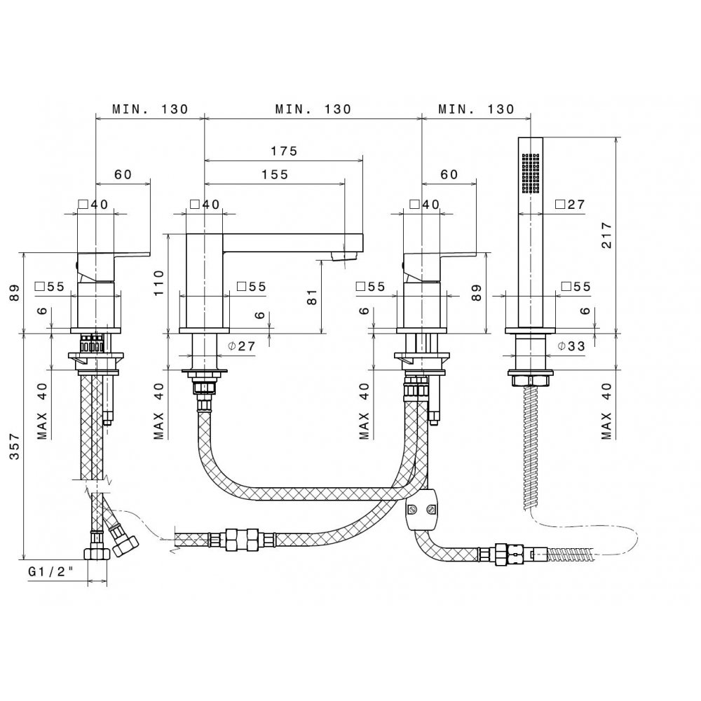 GABOLI FRATELLI SOPHIE BADEWANNENRANDMISCHER 3 LOCH MIT KIT DUSCHE