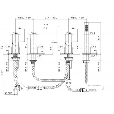 • QUADRO DESIGN VALVOLA02 4-LOCH-BADEWANNENRANDBATTERIE MIT BRAUSEGARNITUR