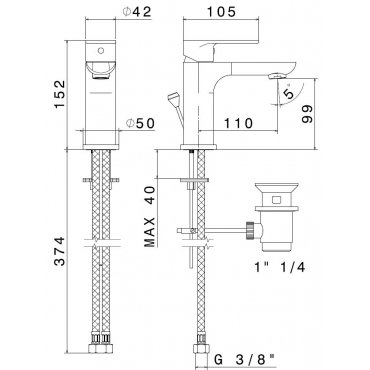 • BUGNATESE KOBUK WASCHTISCHBATTERIE MIT VERLÄNGERUNG MIT ABLAUFGARNITUR CHROM