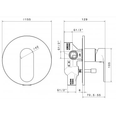 • IB RUBINETTERIE MARMO WANDMONTIERTE DUSCHARMATUREN MIT ZWEIWEGE-UMSTELLER