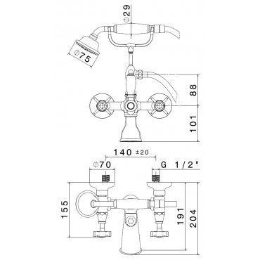 GABOLI FRATELLI VICKY BADEWANNE AUFPUTZ MIT HALTERUNG UND HANDBRAUSE