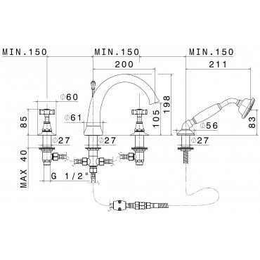 NEWFORM DAYTIME WANNENRANDGRUPPE MIT AUSLAUF, UMSTELLER UND BRAUSEGARNITUR CHROM