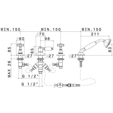 TREEMME ARCHE' WANNENRANDBATTERIE MIT HANDBRAUSE CHROM