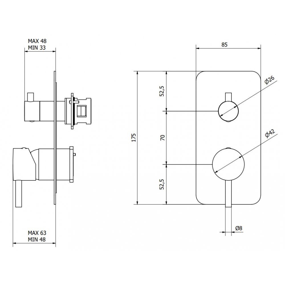 BUGNATESE STONE EINBAU THERMOSTATISCHER DUSCHMISCHER 3 ABGÄNGE VERCHROMT